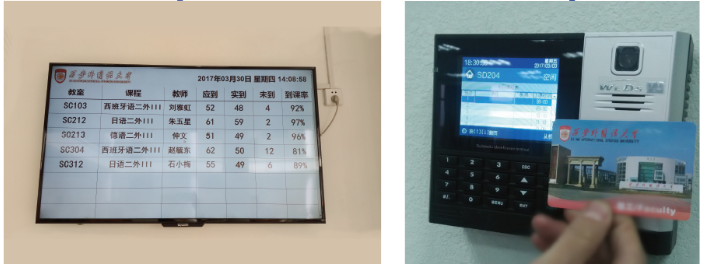 設(shè)備智能管理:教師刷卡上課、學(xué)生刷卡考勤,摒棄了手工統(tǒng)計和點名的落后方式,提高了課堂學(xué)習(xí)效率。